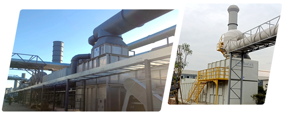 工藝沸石轉(zhuǎn)輪+TO 技術(shù)難點:塑膠加溫后廢氣含高沸點物質(zhì),氣體溫度較高;危廢倉庫廢氣成分復(fù)雜,含有鹵素 方案:氣體冷卻后進入四級過濾,過濾去除焦油和顆粒物后進入沸石轉(zhuǎn)輪濃縮后進入TO氧化處理 結(jié)果:排放值12-18mg/Nm3